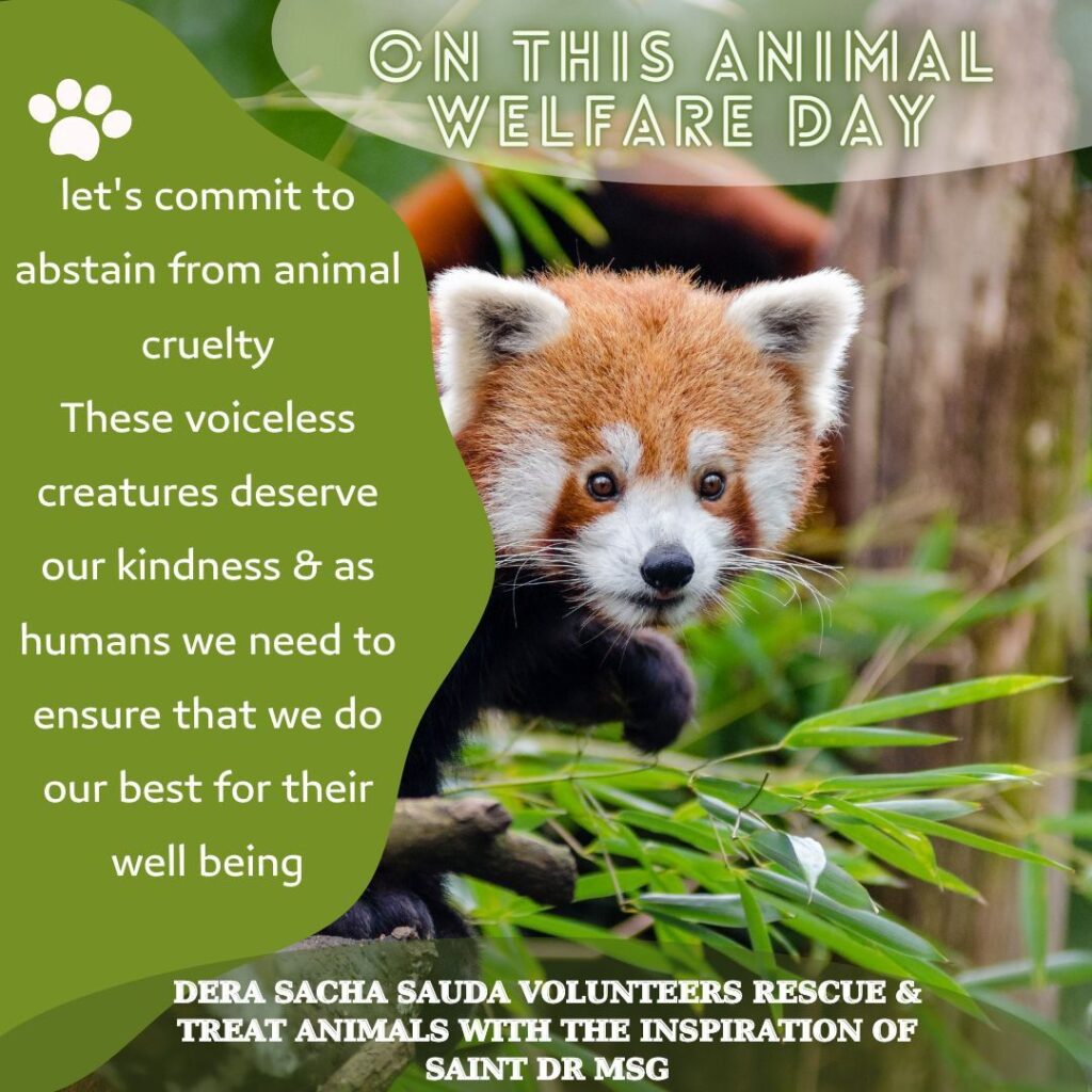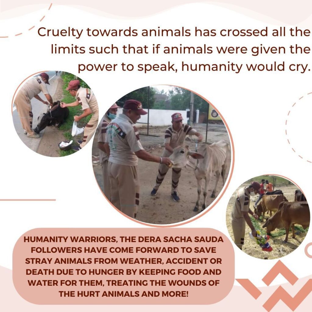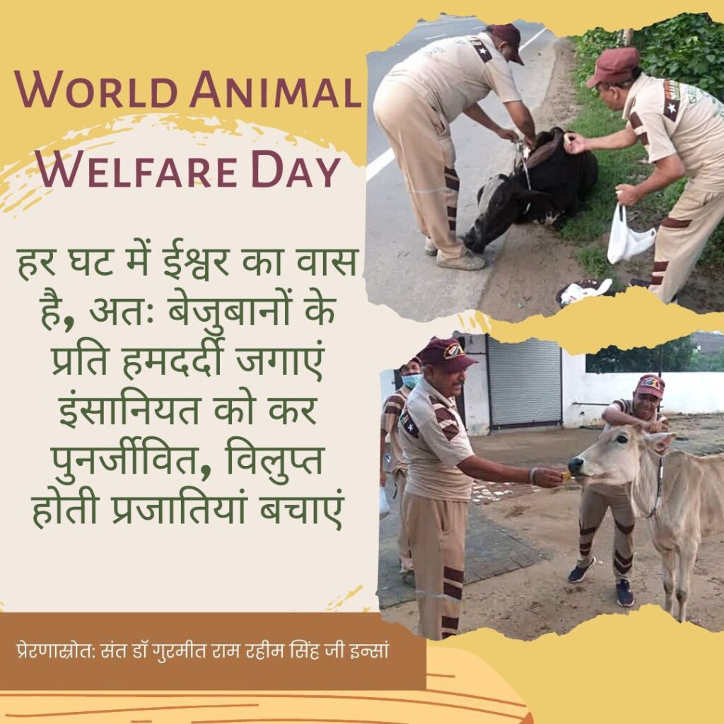 Since we are humans, humanity is our first duty and humanity extends to animals, birds as well not only limited to humans. Dera Sacha Sauda volunteers are presenting the best example by showing love, humanity and passion to serve God’s every creation. The credit for teaching such virtues of kindness, humanity and love towards animals goes to Saint Dr Gurmeet Ram Rahim Singh Ji Insan. HE not only teaches masses to treat animals well but also feeds them and treats them with love, care and compassion.  Let’s all celebrate this World Animal Welfare Day by pledging to be kind and compassionate towards animals. Let’s all love and care for animals, for they are also living organisms just like us!!